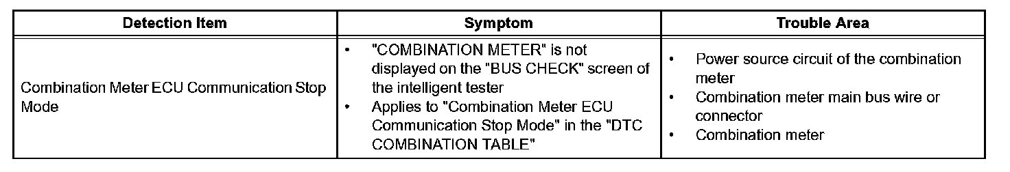 Combination Meter ECU Communication Stop ModeDetection Item: