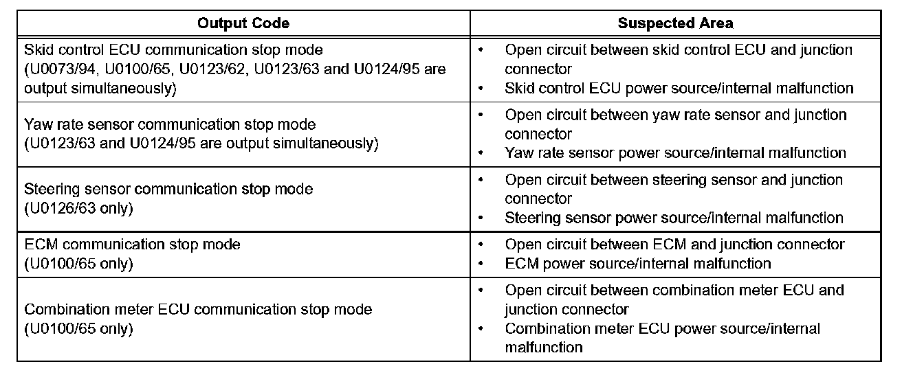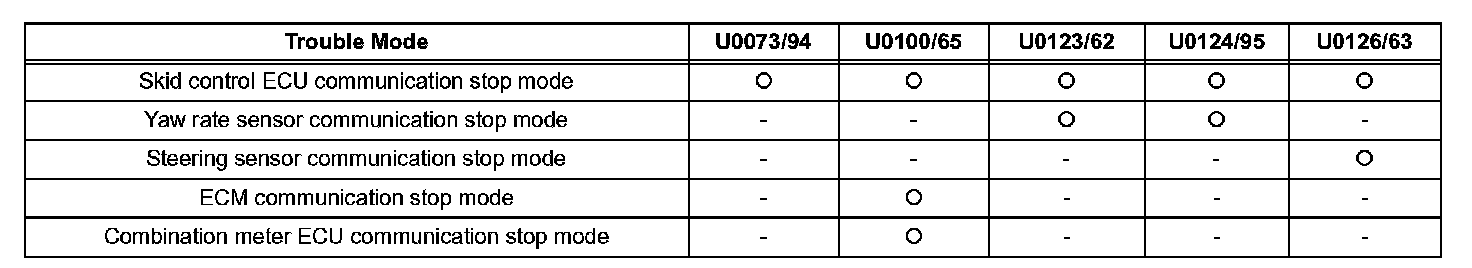 - U0073/94, U0100/65, U0123/62, U0123/63, and U0124/95 are the DTCs in the CAN communication system.