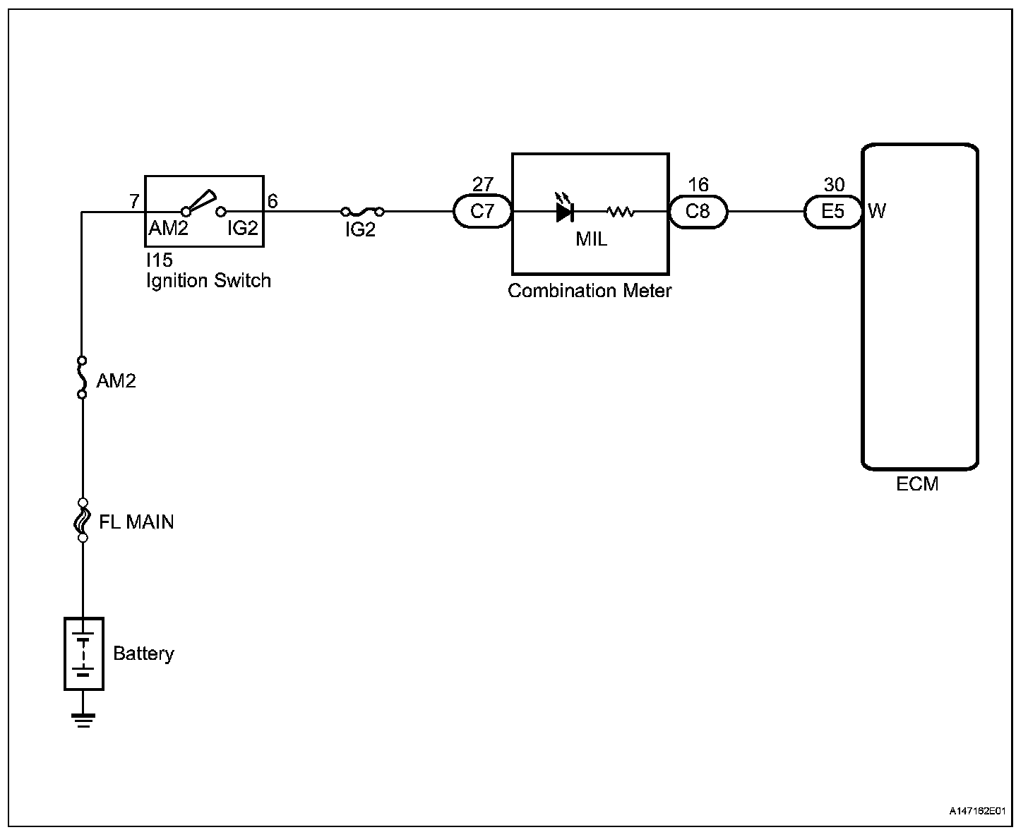 The MIL is used to indicate the ECM's detection of a vehicle malfunction. The instrument panel GAUGE fuse provides the circuit power and the ECM provides the circuit ground that illuminates the MIL.