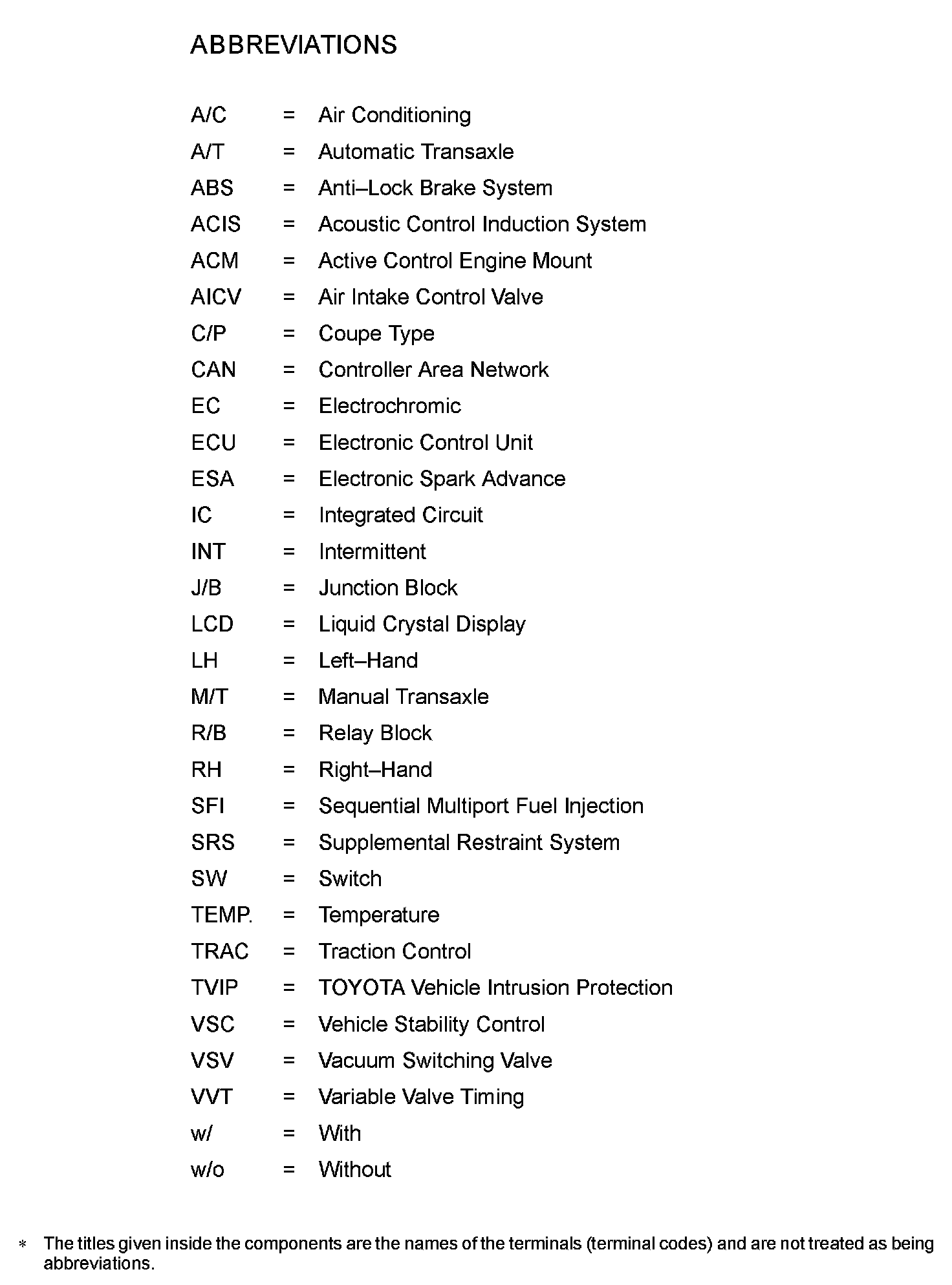 Abbreviations Used Within Diagrams
