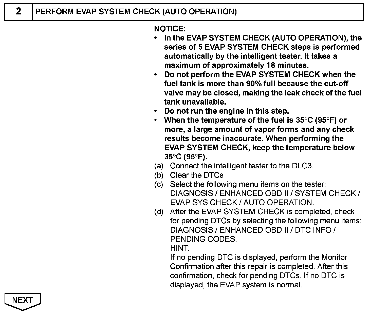 - Using intelligent tester monitor results enables the EVAP (Evaporative Emission) system to be confirmed.
