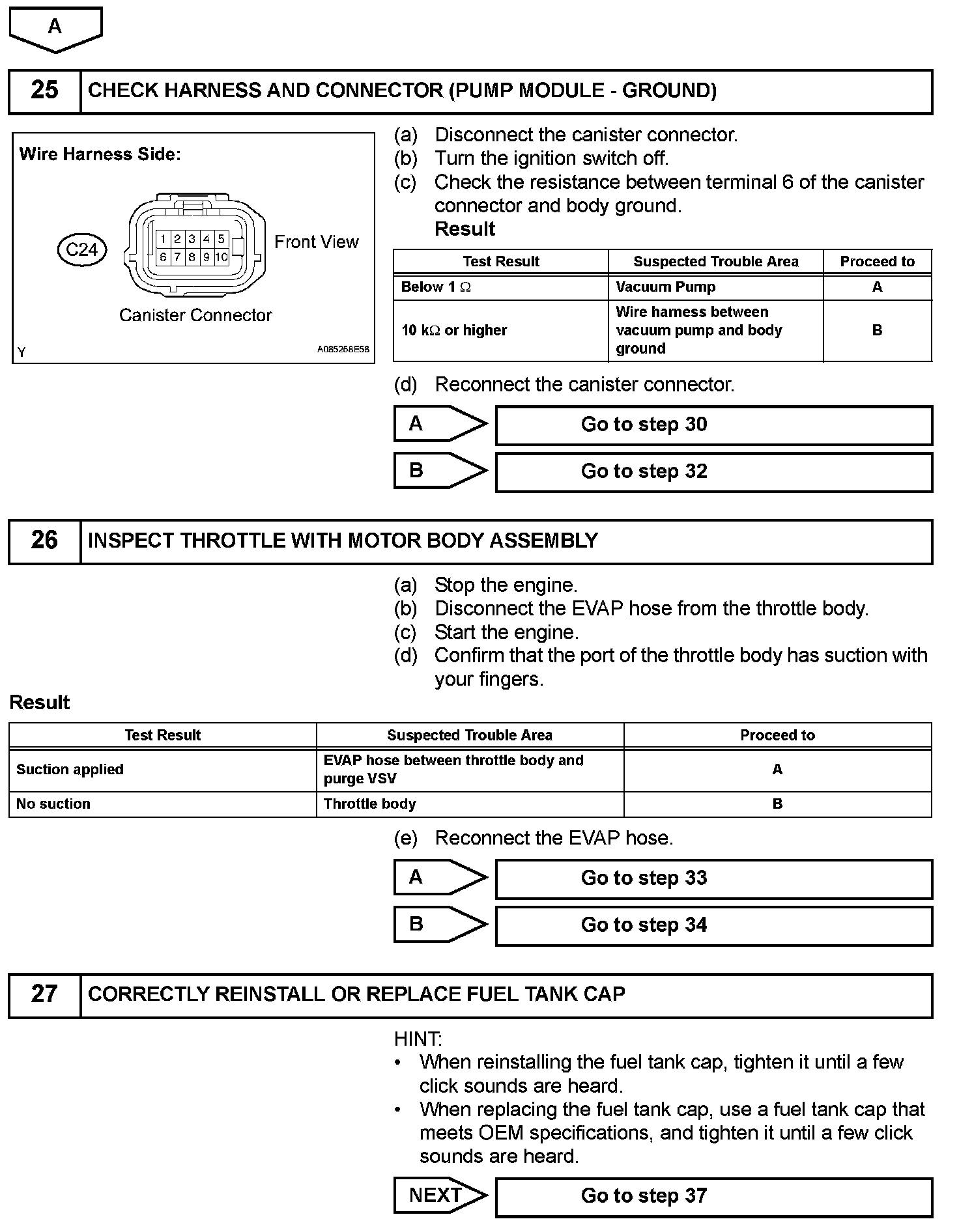 HINT: After a repair, check Monitor Status by performing the Key-Off Monitor Confirmation and Purge Flow Monitor Confirmation described.