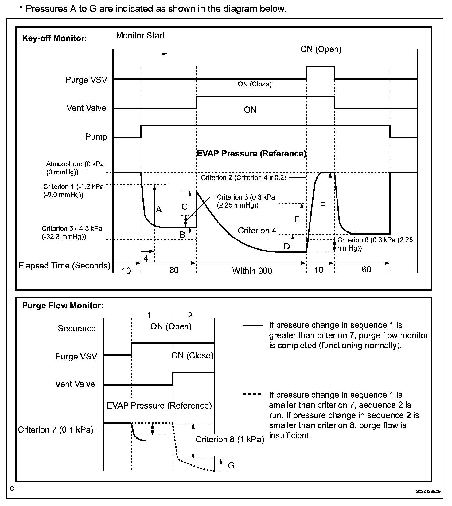 The purge flow monitor consists of the two monitors. The 1st monitor is always conducted every time and the 2nd monitor is activated if necessary.