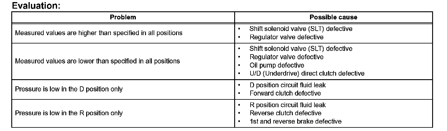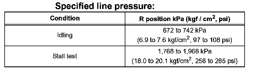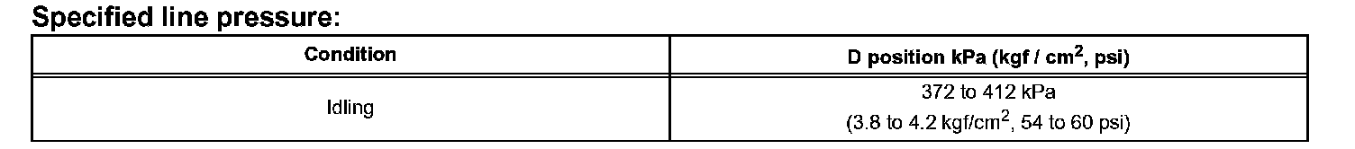 ^ Perform the test at the normal operating ATF (Automatic Transmission Fluid) temperature: 50 to 80°C (122 to 176°F).