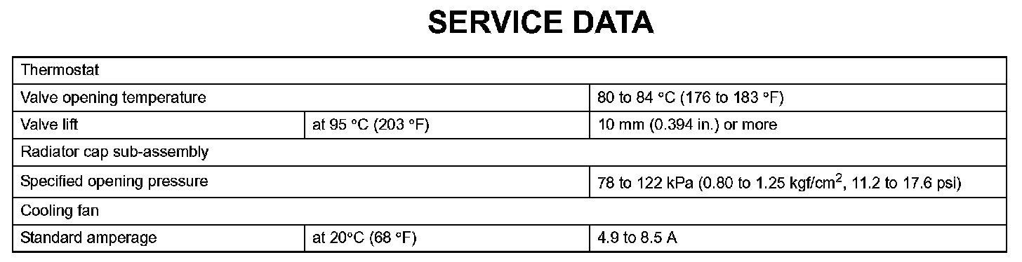 Cooling - Service Data:
