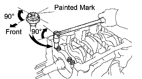 Retighten the bearing cap bolts by 90° in the same sequence as step (h).