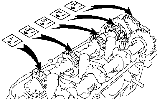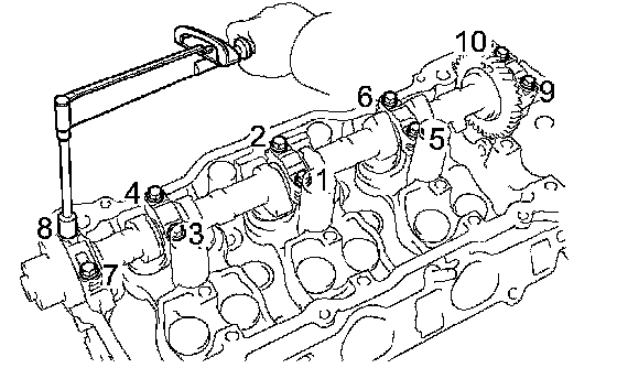 Uniformly tighten the 10 bearing cap bolts in the sequence shown in the illustration.