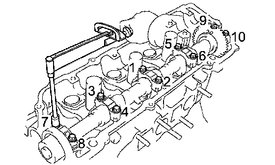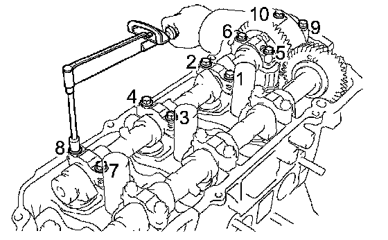Uniformly tighten the 10 bearing cap bolts in the sequence show in the illustration.