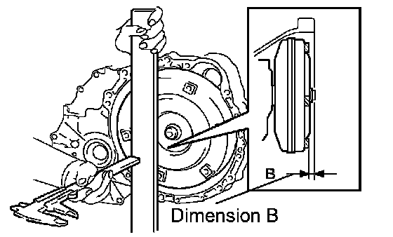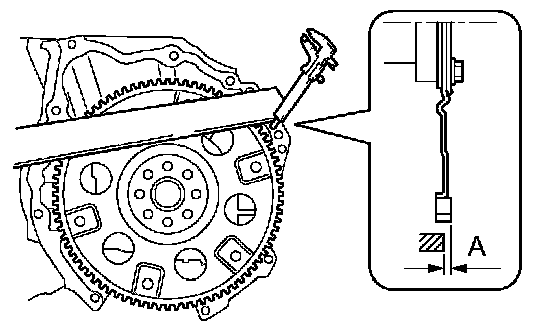 (b) Using vernier calipers and a straight edge, measure the dimension "A" between the transaxle fitting part of the engine and the converter fitting part of the drive plate.