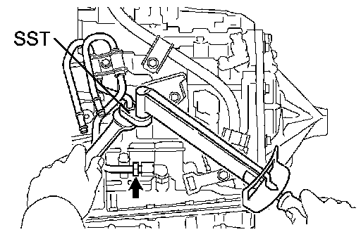 (a) Using SST and a wrench, tighten the oil cooler outlet tube No. 1.