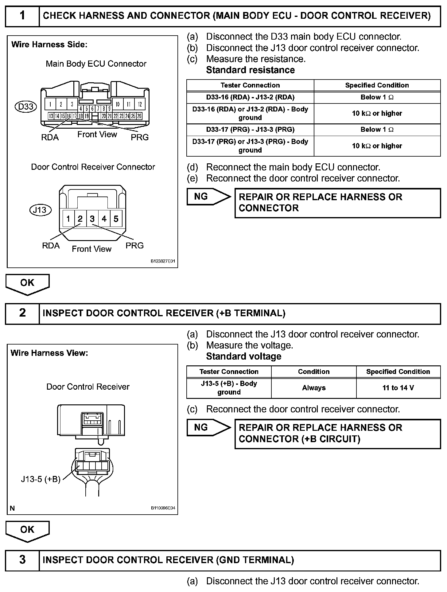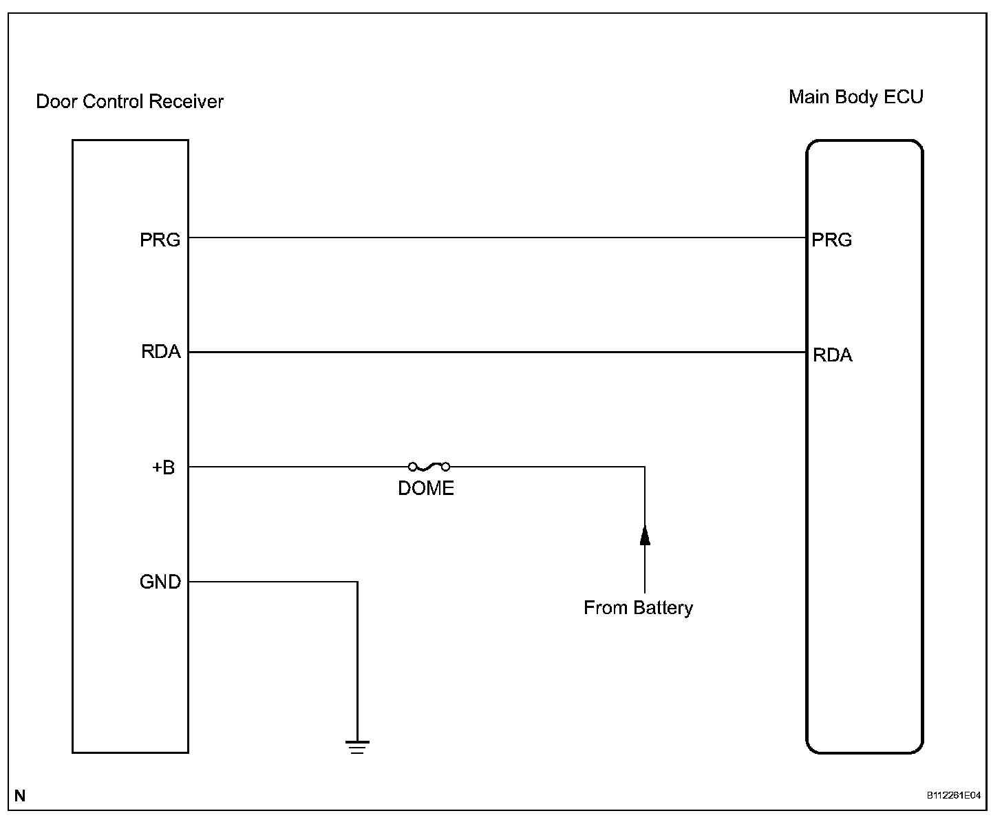 The door control receiver receives signals from the transmitter and sends these signals to the main body ECU.