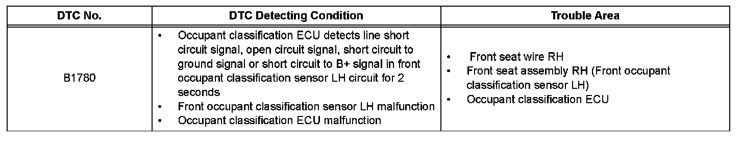 DTC B1780 Front Occupant Classification Sensor LH Circuit MalfunctionDESCRIPTION