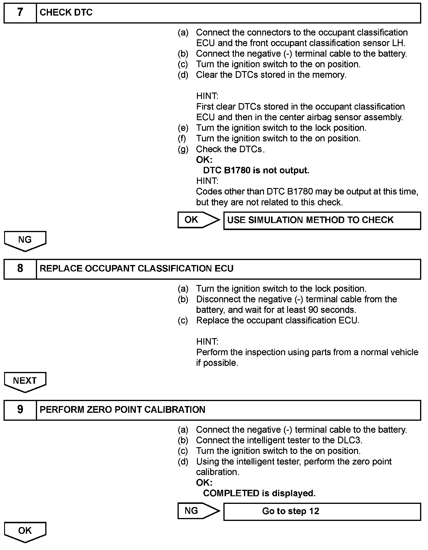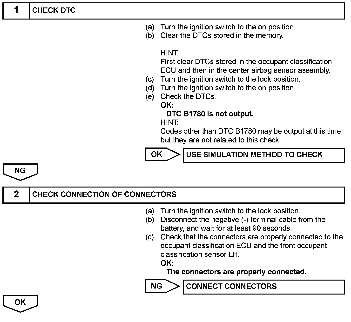 DTC B1780 is recorded when a malfunction is detected in the front occupant classification sensor LH circuit.