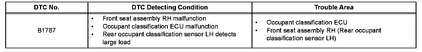 DTC B1787 is output when the occupant classification ECU receives a collision detection signal sent by the rear occupant classification sensor LH when an