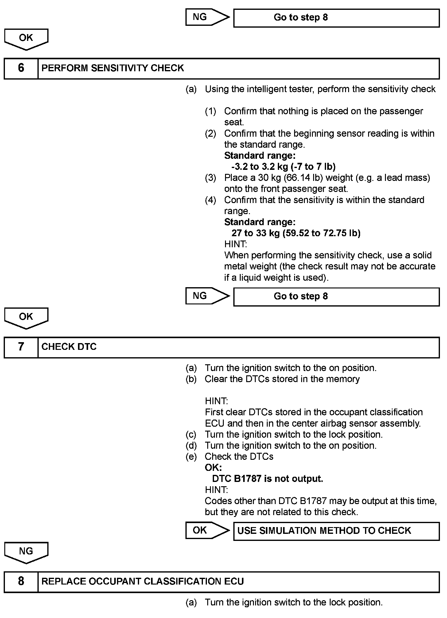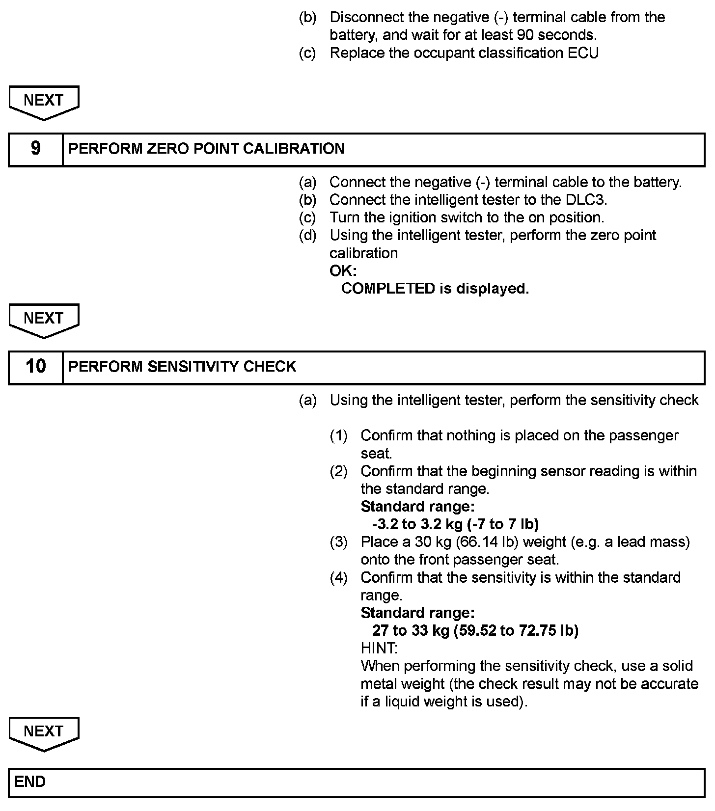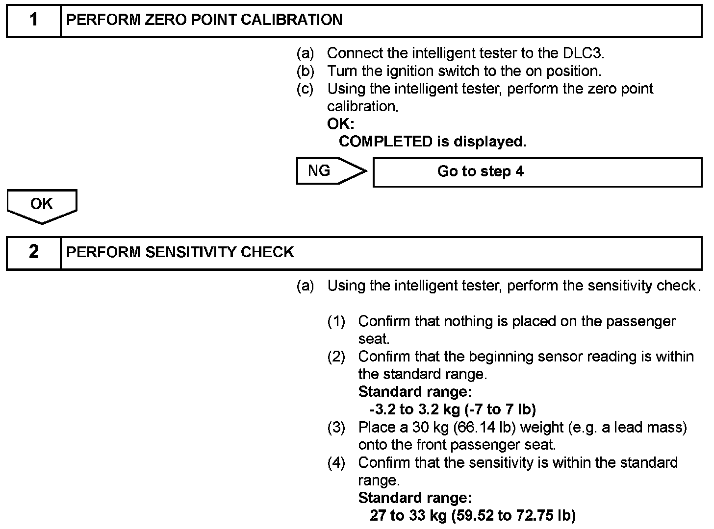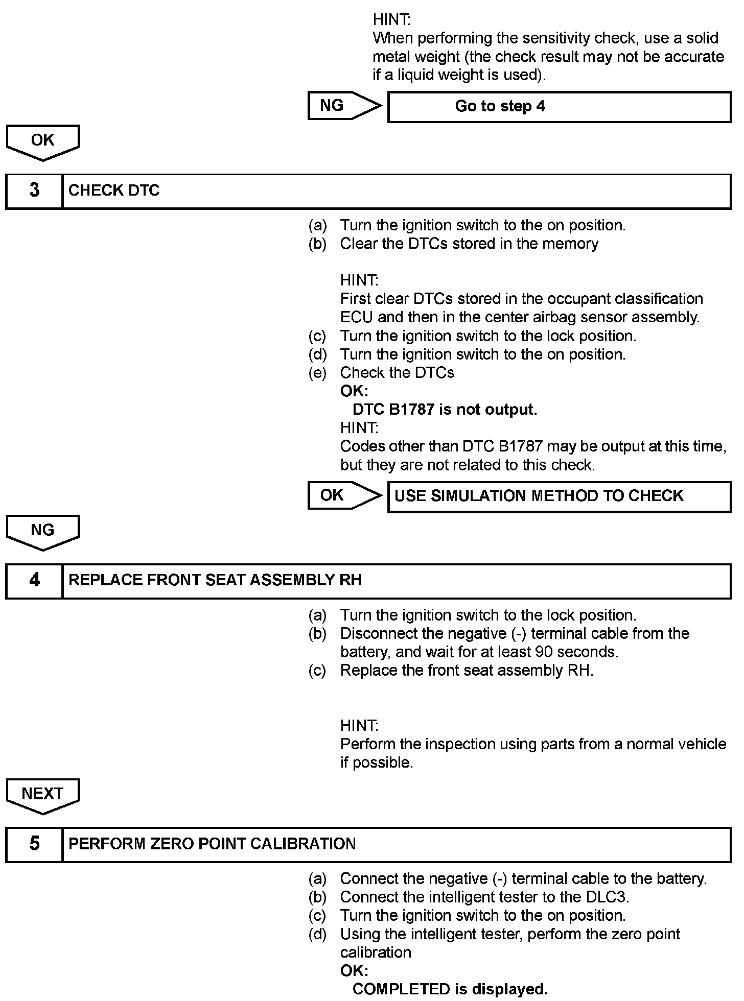 However when the rear occupant classification sensor LH outputs a collision detection signal even if the vehicle is not in a collision DTC B1787 can be cleared by performing the zero point calibration and sensitivity check.