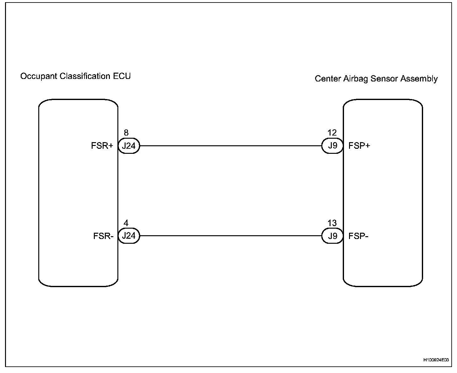 The center airbag sensor assembly communication circuit consists of the occupant classification ECU and the center airbag sensor assembly.