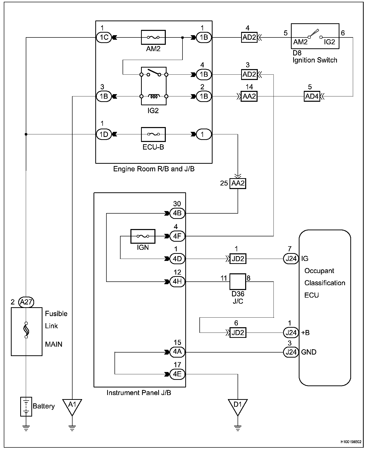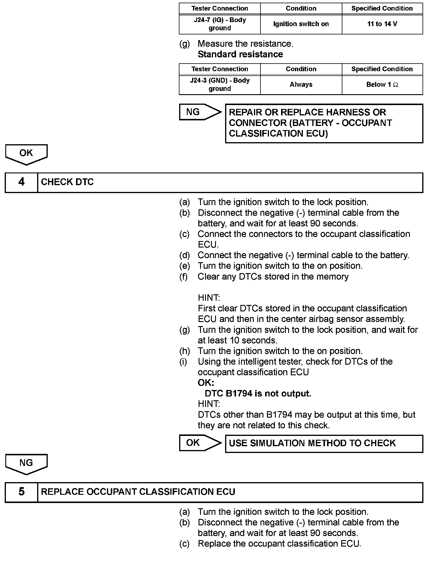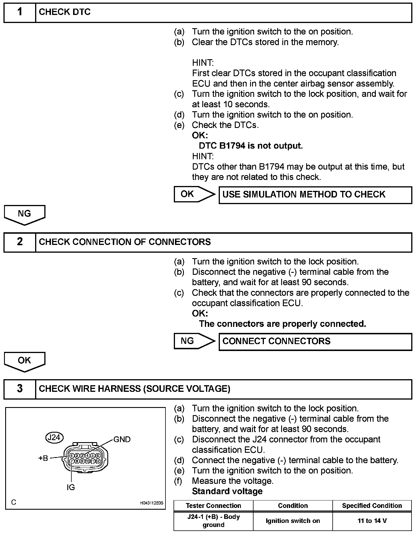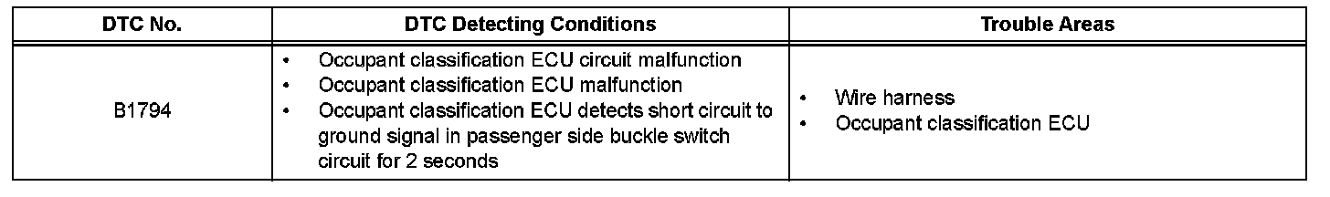 DTC B1794 Open in Occupant Classification ECU Battery Positive LineDESCRIPTION