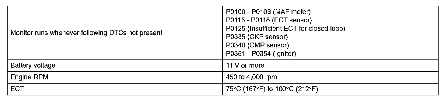 - The engine is warm (the engine coolant temperature is 75 °C [167 °F] or more).
