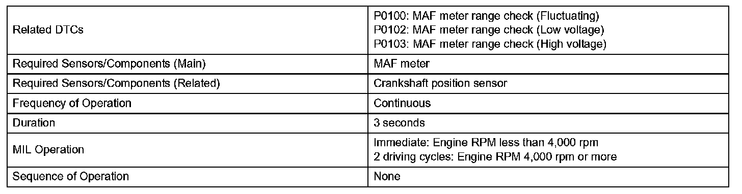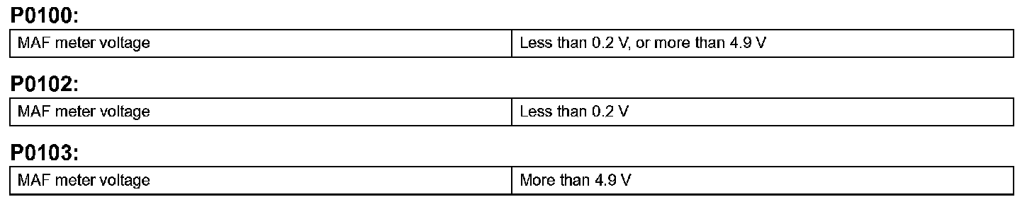 DTC P0100 Mass or Volume Air Flow CircuitDTC P0102 Mass or Volume Air Flow Circuit Low Input
