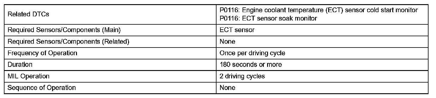 DTC P0116 Engine Coolant Temperature Circuit Range / Performance ProblemDESCRIPTION