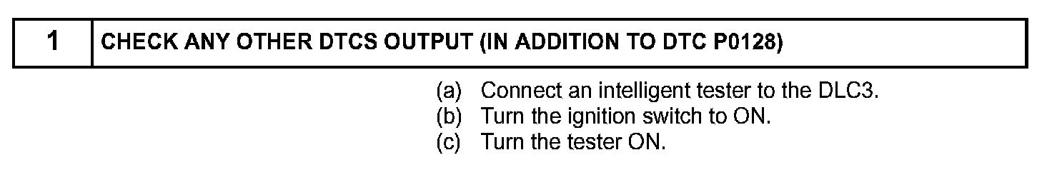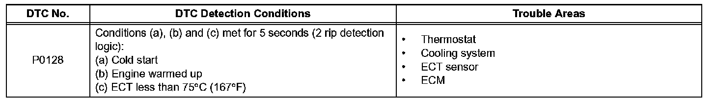 DTC P0128 Coolant Thermostat (Coolant Temperature Below Thermostat Regulating Temperature)HINT: This DTC relates to the thermostat.
