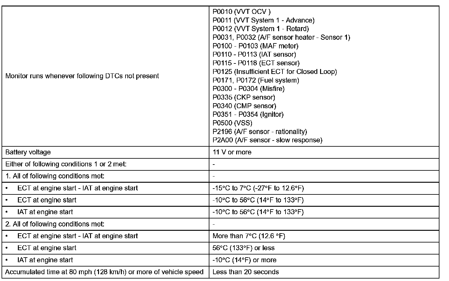 DTC Detection Conditions: