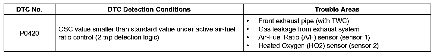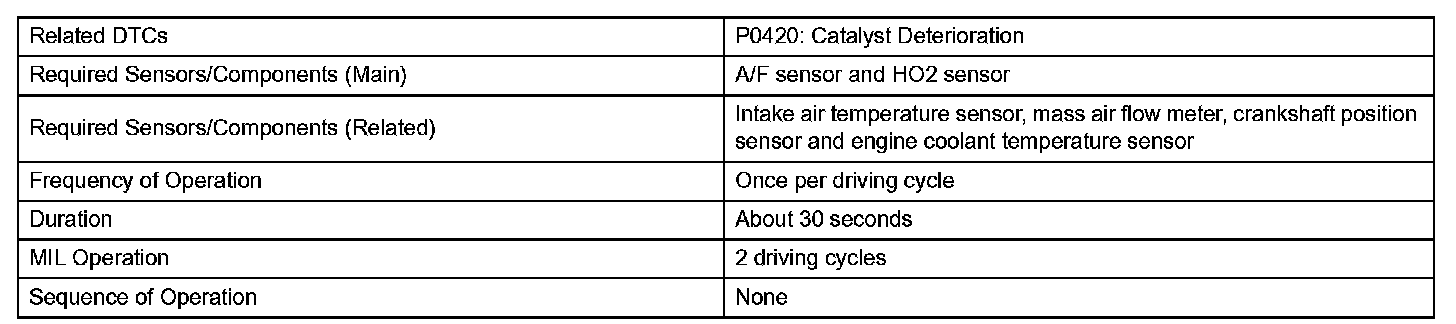 DTC P0420 Catalyst System Efficiency Below Threshold (Bank 1)MONITOR DESCRIPTION