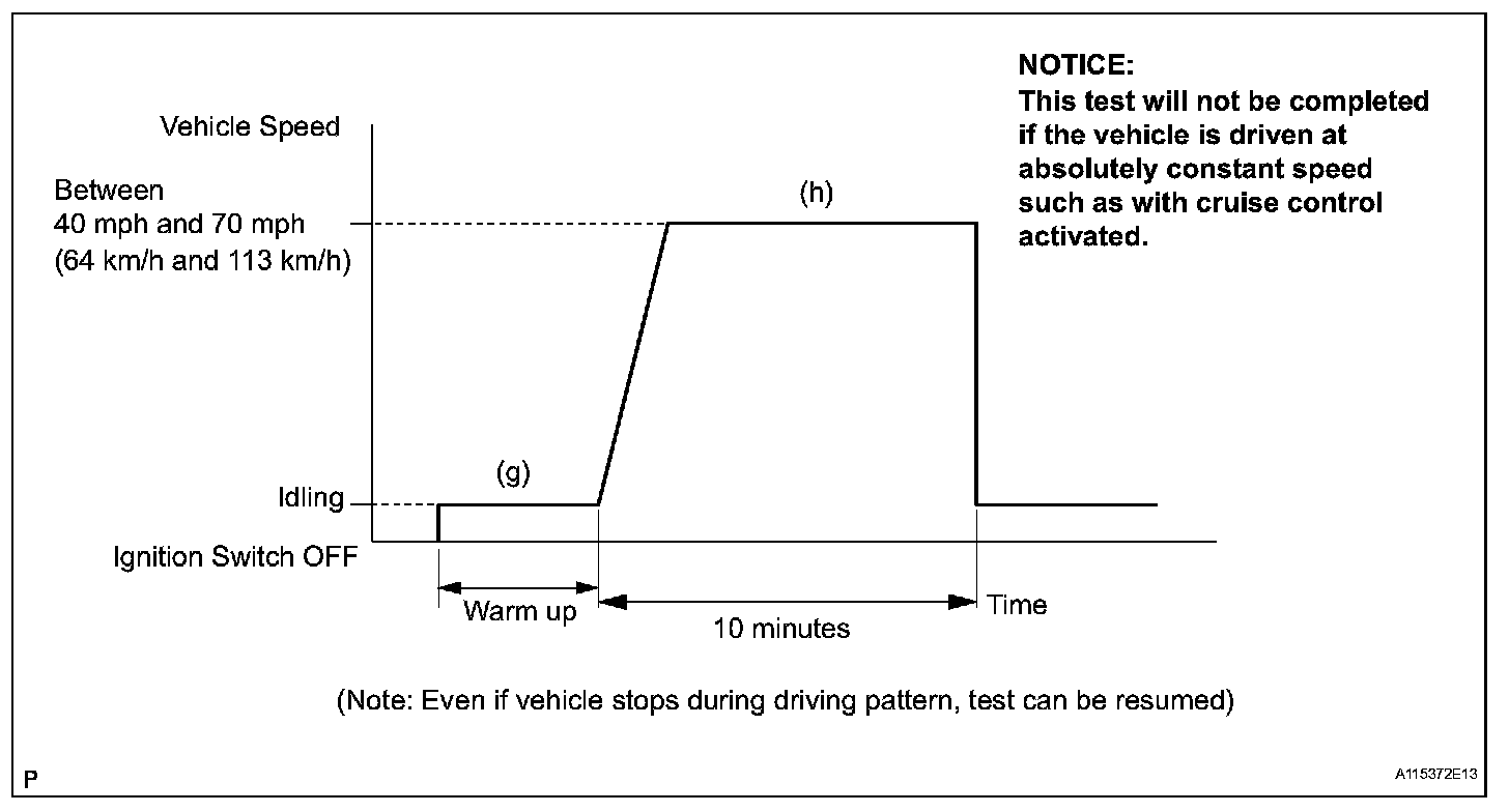 h. Drive the vehicle at between 40 mph and 70 mph (64 km/h and 113 km/h) for at least 10 minutes.