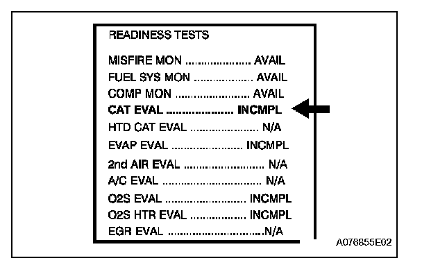 HINT: If CAT EVAL does not change to COMPL, and any pending DTCs fail to set, extend the driving time.