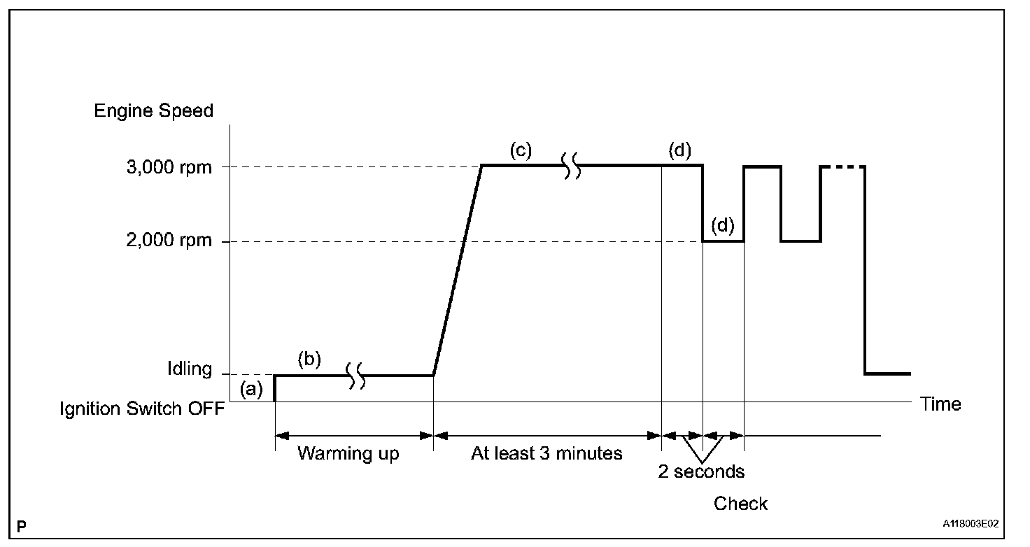 HINT: Perform the operation with the engine speeds and time durations described prior to checking the waveforms of the A/F and HO2 sensors. This is in order to activate the sensors sufficiently to obtain the appropriate inspection results.