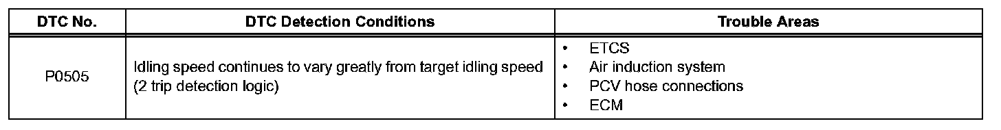 DTC P0505 Idle Control System MalfunctionDESCRIPTION