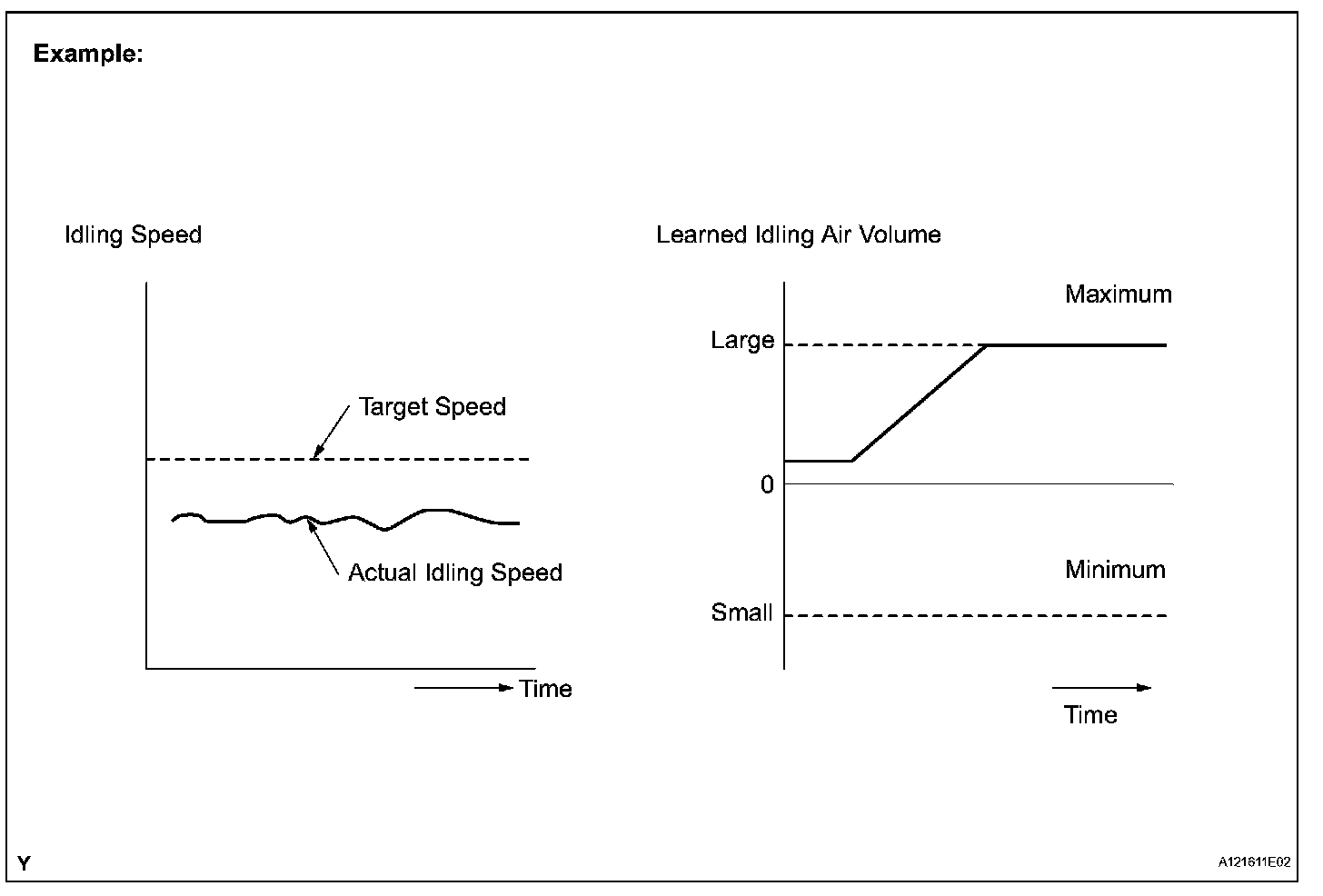 - The learned idling air flow volume remains at the maximum or minimum volume 5 times or more during a drive cycle.
