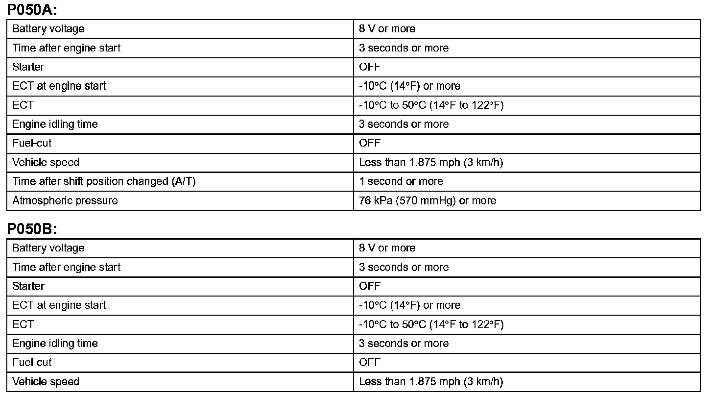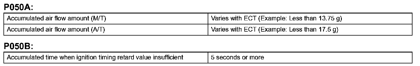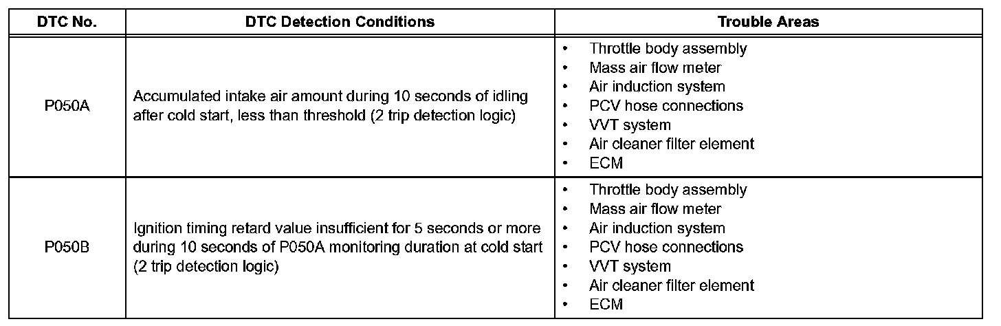 DTC P050A Cold Start Idle Air Control System PerformanceDTC P050B Cold Start Ignition Timing Performance