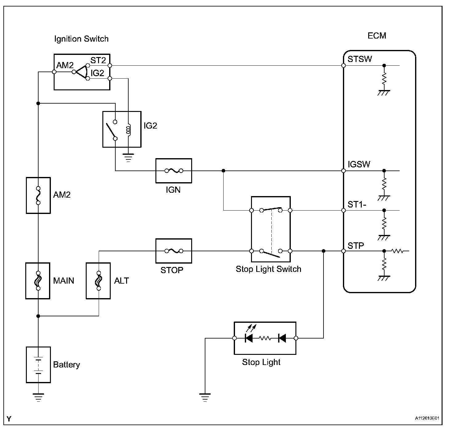 The purpose of this circuit is to prevent the engine from stalling when brakes are suddenly applied while driving in lock-up condition.
