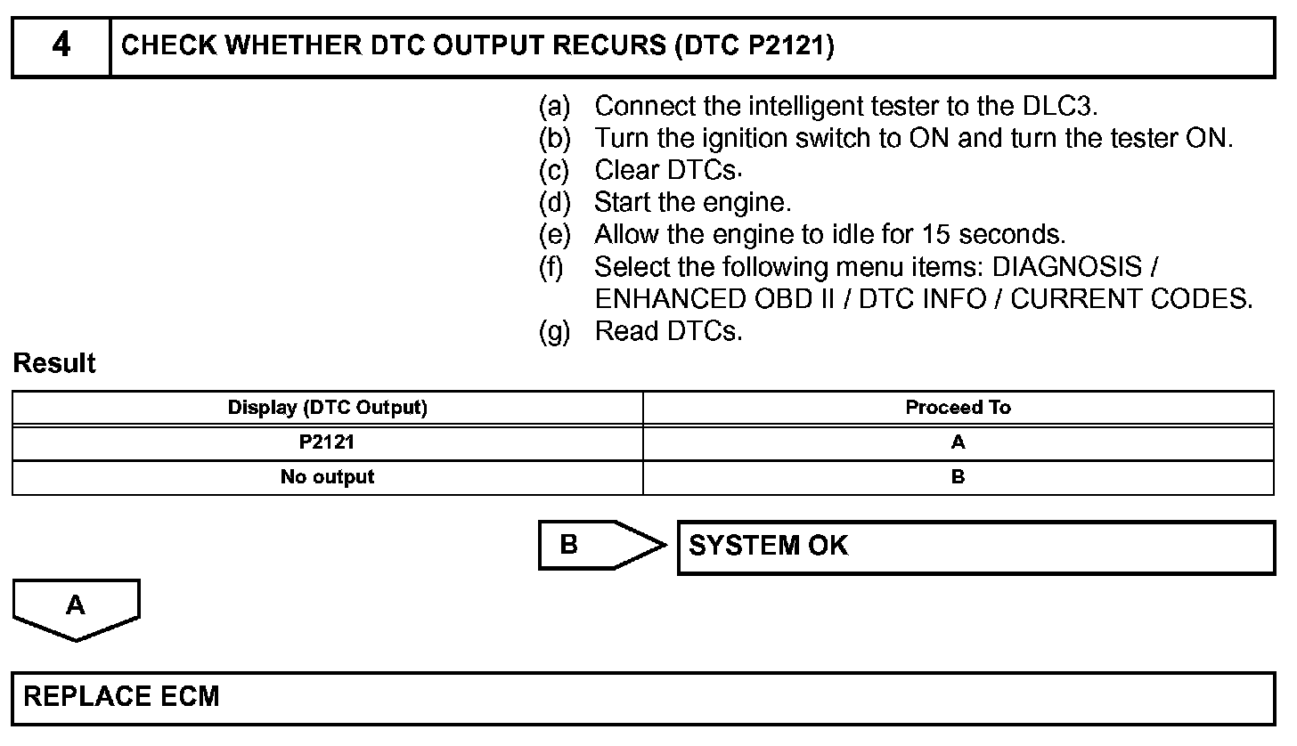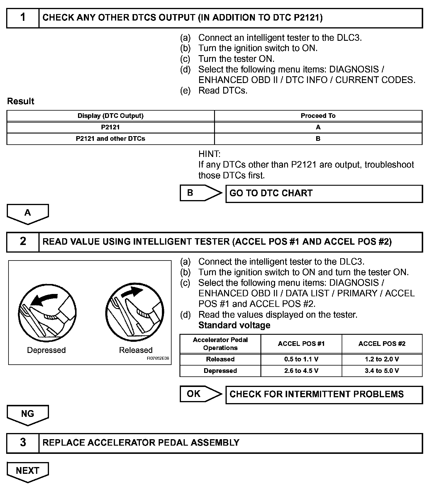 DTC P2121 Throttle / Pedal Position Sensor / Switch "D" Circuit Range / PerformanceDTC Detection Conditions:
