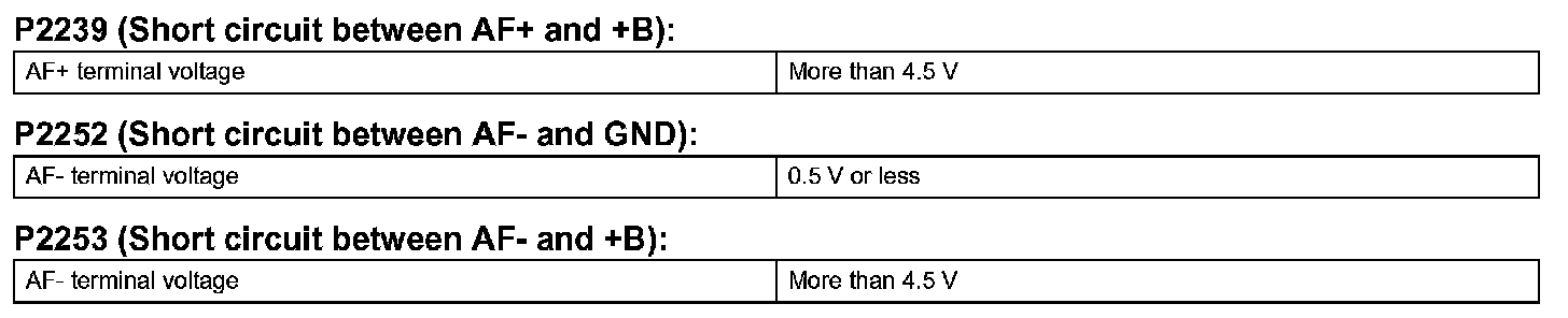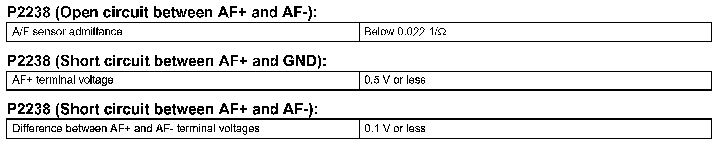DTC P2238 Oxygen (A/F) Sensor Pumping Current Circuit Low (Bank 1 Sensor 1)DTC P2239 Oxygen (A/F) Sensor Pumping Current Circuit High (Bank 1 Sensor 1)