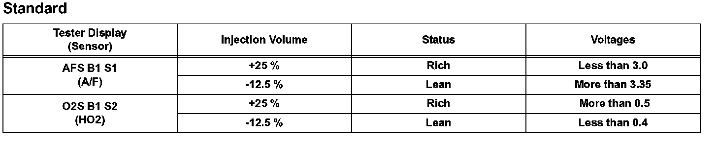HINT: Intelligent tester only: Malfunctioning areas can be identified by performing the A/F CONTROL function provided in the ACTIVE TEST. The A/F CONTROL function can help to determine whether the Air-Fuel Ratio (A/F) sensor, Heated Oxygen (HO2) sensor and other potential trouble areas are malfunctioning. The following instructions describe how to conduct the A/F CONTROL operation using the intelligent tester.