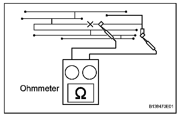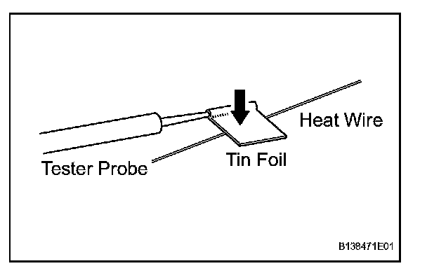 a. Inspect the continuity, at the center of each antenna wire, as shown in the illustration.