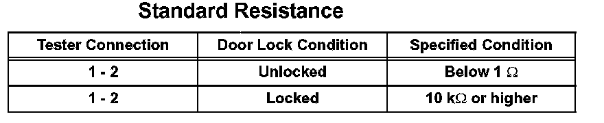 1. Using an ohmmeter, measure the resistance and check the results in accordance with the value(s) in the tables given.