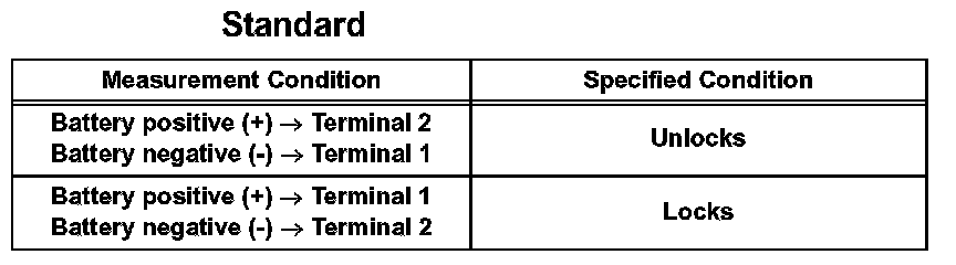If the result is not as specified, replace the back door lock actuator.