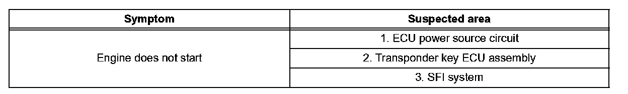 PROBLEM SYMPTOMS TABLEHINT: Use the given table to help determine the cause of the problem symptom. The potential causes of the symptoms are listed in order of probability in the "Suspected Area" column of the table. Check each symptom by checking the suspected areas in the order they are listed. Replace parts as necessary.