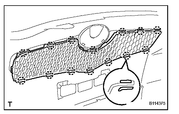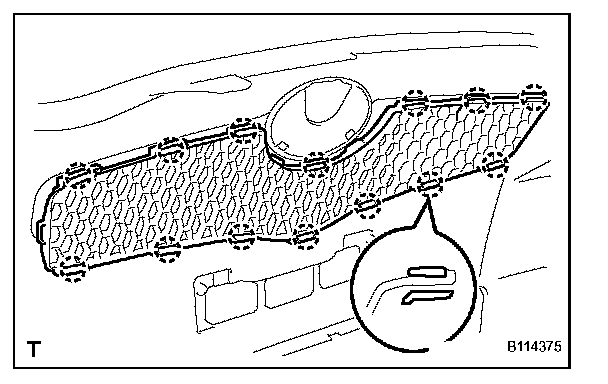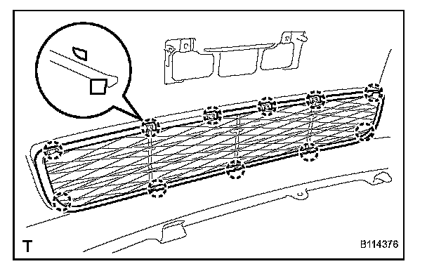 a. Using a screwdriver, disengage the 14 claws and remove the radiator grille.