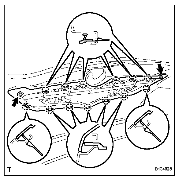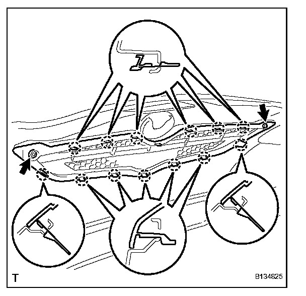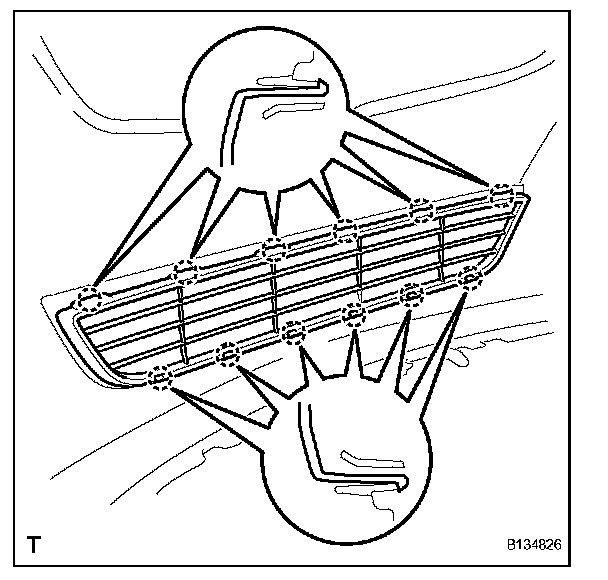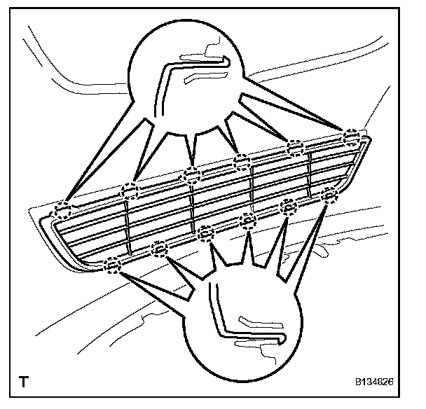 a. Engage the 13 claws and install the radiator grille.