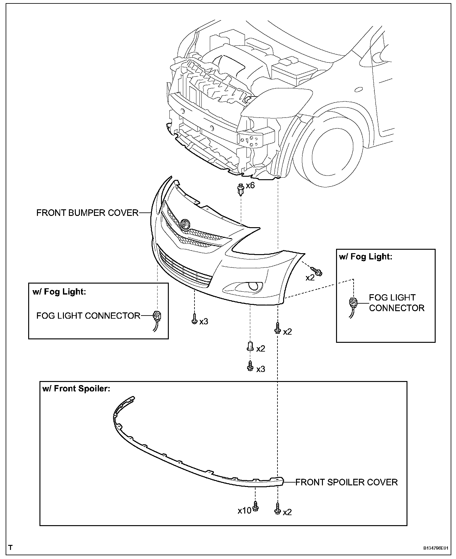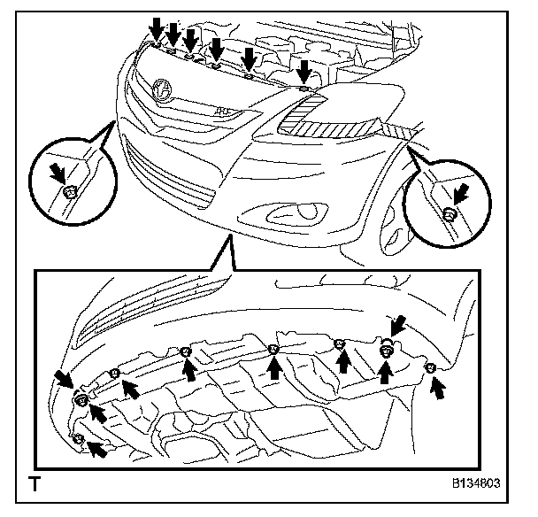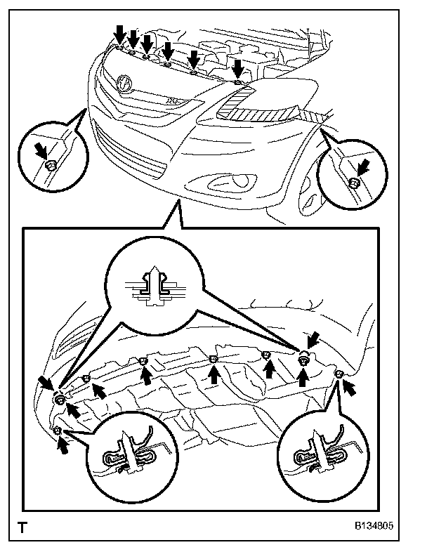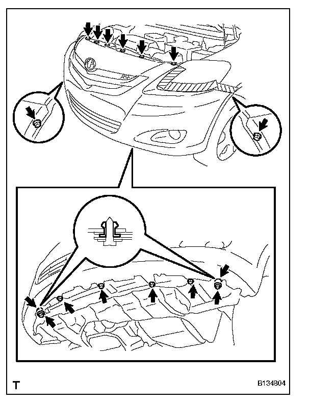 1. Disengage the 6 claws and remove the front bumper cover.