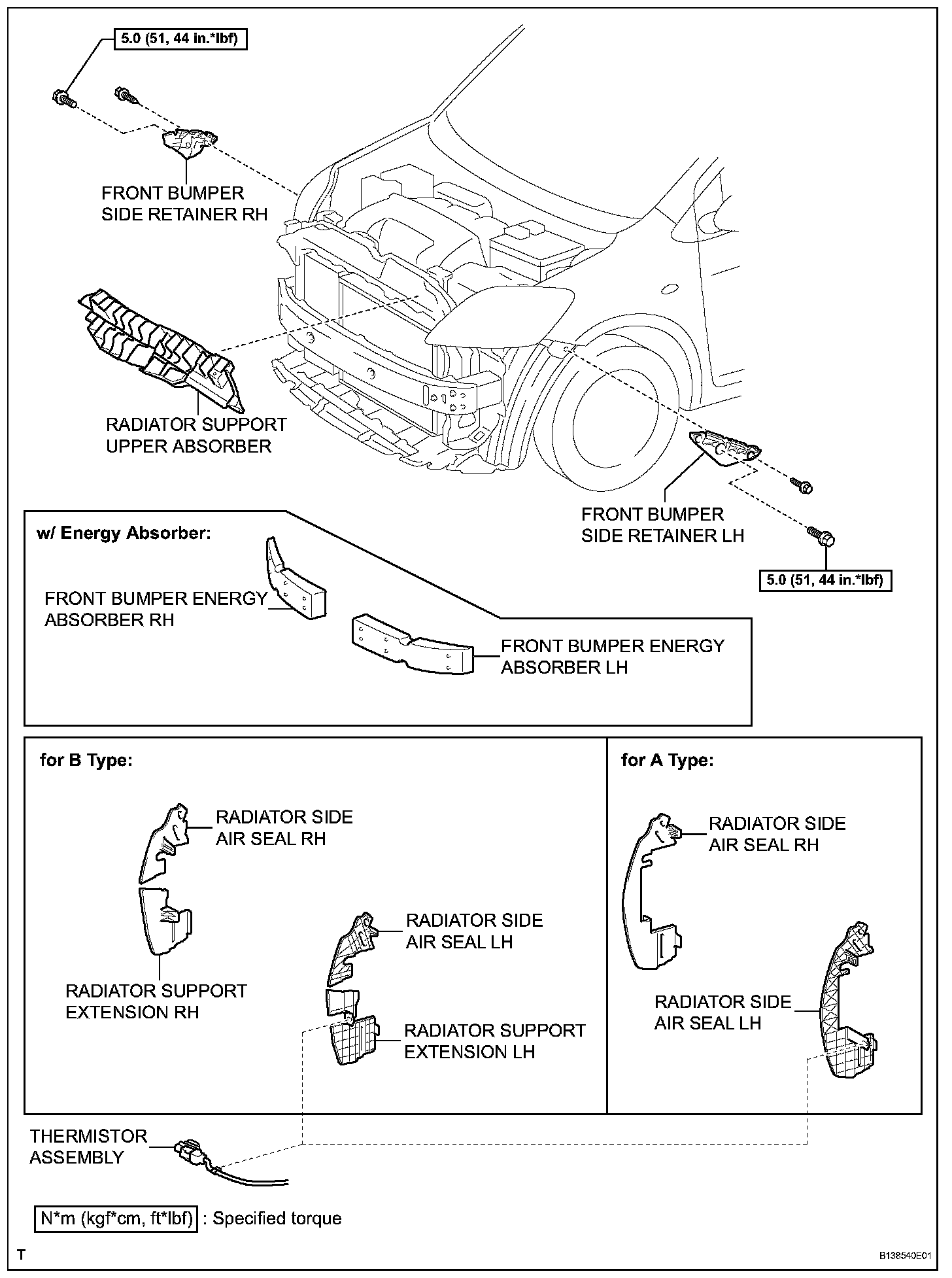 Torque: 5.0 N.m (51 kgf.cm, 44 in.lbf) for bolt