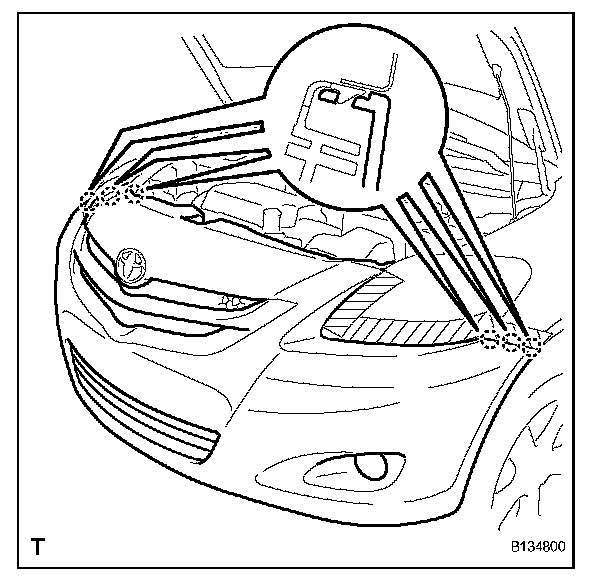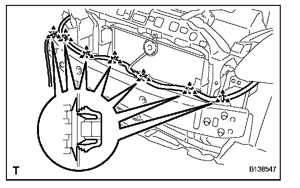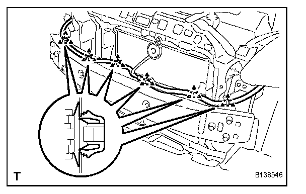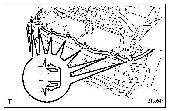 1. Using a clip remover, remove the 6 clamps and the No. 2 engine room wire.