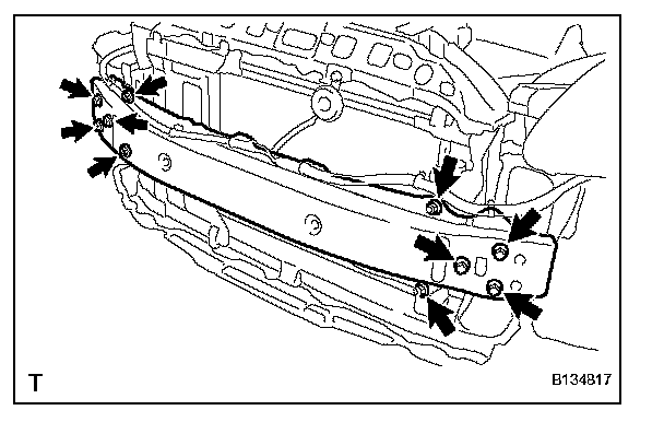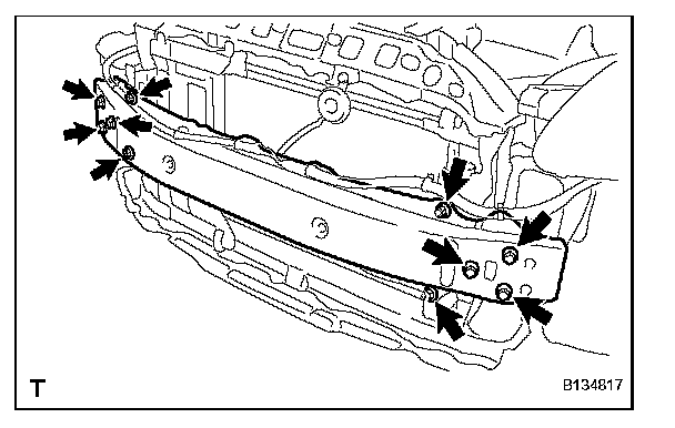 a. Remove the 6 bolts, 4 nuts and the front bumper reinforcement.