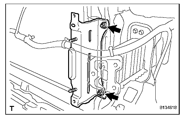 a. Remove the 2 nuts and the front bumper stone deflector bracket.