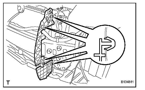 1. Engage the 2 claws and install the radiator side air seal.
