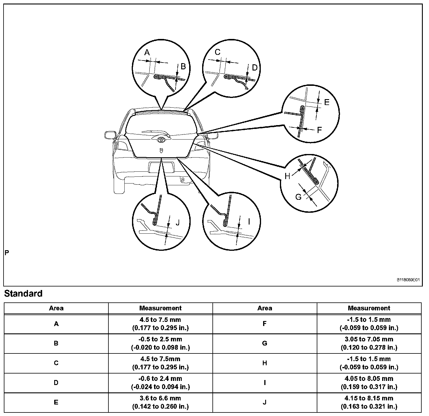 a. Check that the clearance measurements are within the standard ranges.